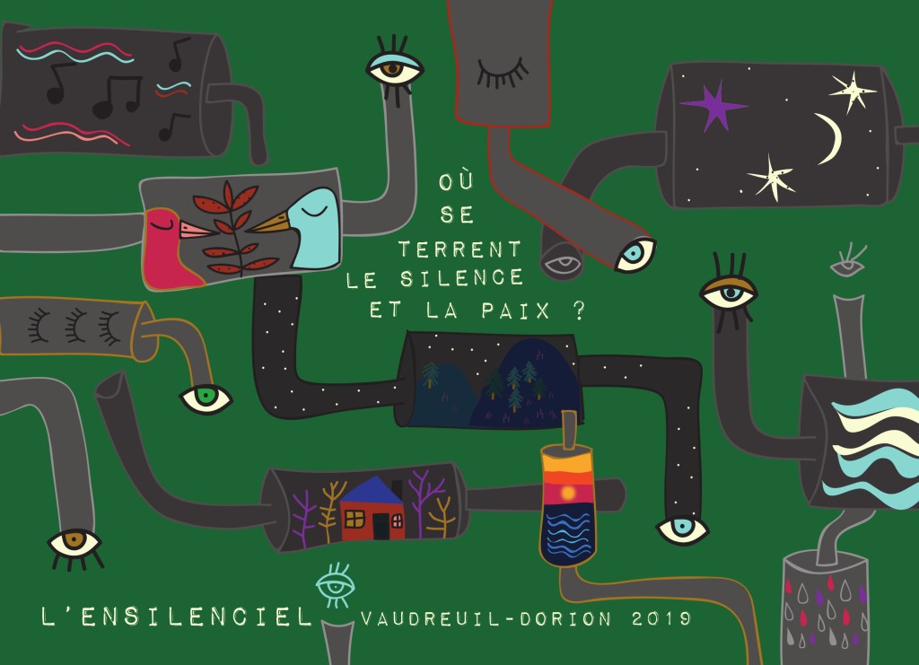 Faite de 60 silencieux de voitures et camions, cette installation évoque avec humour les bruyants feux industriels qui organisent nos villes et nos vies. Elle nous demande ainsi : quelles sont ces musiques et ces lieux qui nous donnent vraiment accès au silence et à la paix intérieures ? Les visiteur-teuse-s reçoivent une carte dédiée pour convier un-e proche à rejoindre un tel lieu et/ou musique. L’Ensilenciel appelle ainsi à reconnaître et à rendre hommage à ces « espaces » fragiles, nécessaires et menacés.