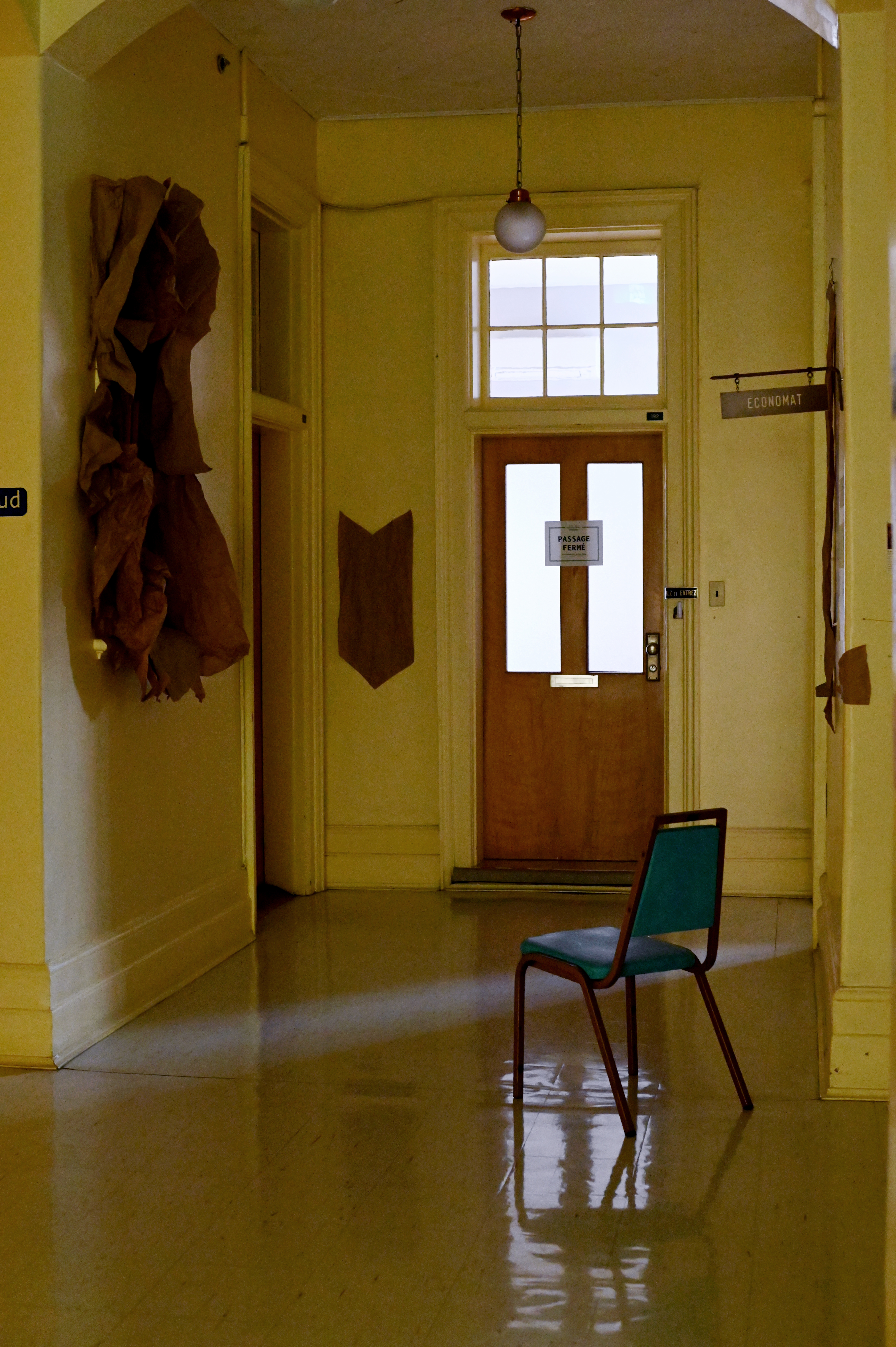 Fabriquée avec des « livres fantômes », volumes en bois remplaçant jadis les titres empruntés dans une bibliothèque du couvent pour en tenir les rayons, cette sculpture est un temple flottant pour les écrits censurés, honnis et portés à l’état de fantômes par les autorités. Installée dans l’ancien couvent des Hospitalières dont la construction fût entreprise par Mgr Bourget, un censeur répressif opposé à l’accès public à tous les savoirs, elle réalise un juste retour des choses, posant un regard critique dans l’histoire. Mais on aura beau censurer les livres, la littérature et l’écriture vivent à la frontière du matériel et de l’immatériel : les idées qu’ils contiennent résistent avec esprit.