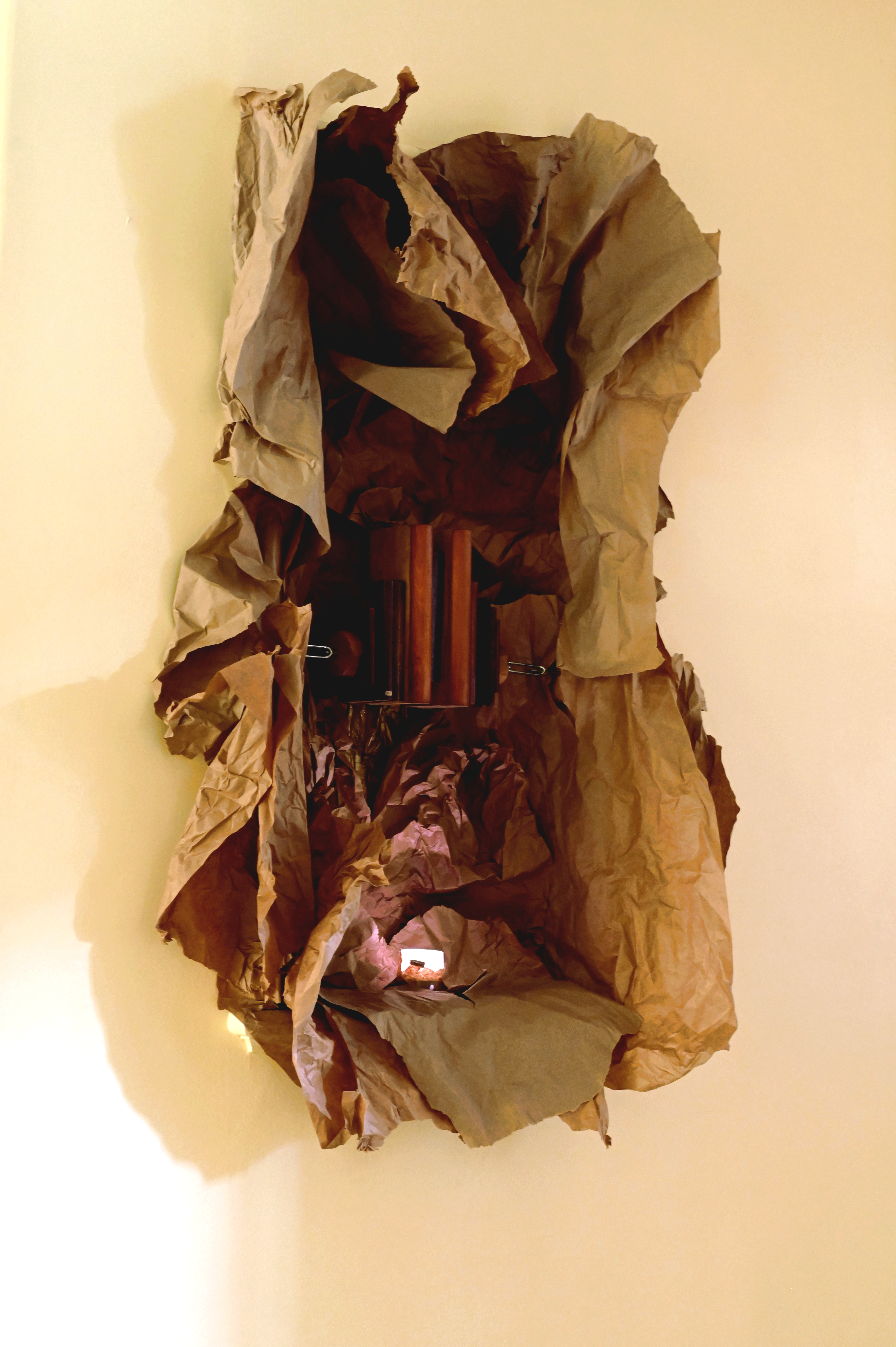 Un ensemble sculptural formé de trois brassées d’éclisses de fibre d’un érable fracassé. Installé au début du sentier du Sommet, l’oeuvre questionne l’état des forêts du sud du Québec et invite le public à retisser leur toile guérisseuse, nourricière et protectrice. Plutôt que d’orienter notre regard vers le ciel comme le faisaient les ostensoirs guidant autrefois les fidèles catholiques dans le sentier du Calvaire, l’oeuvre situe la lumière du sacré au cœur de la forêt. Sa position en plein champ reflète la marginalisation des territoires et communautés forestières par la-les colonisation-s, ainsi que la perte de biodiversité, conséquence de la destruction des écosystèmes et des modes de production qui ne respectent pas l’environnement.