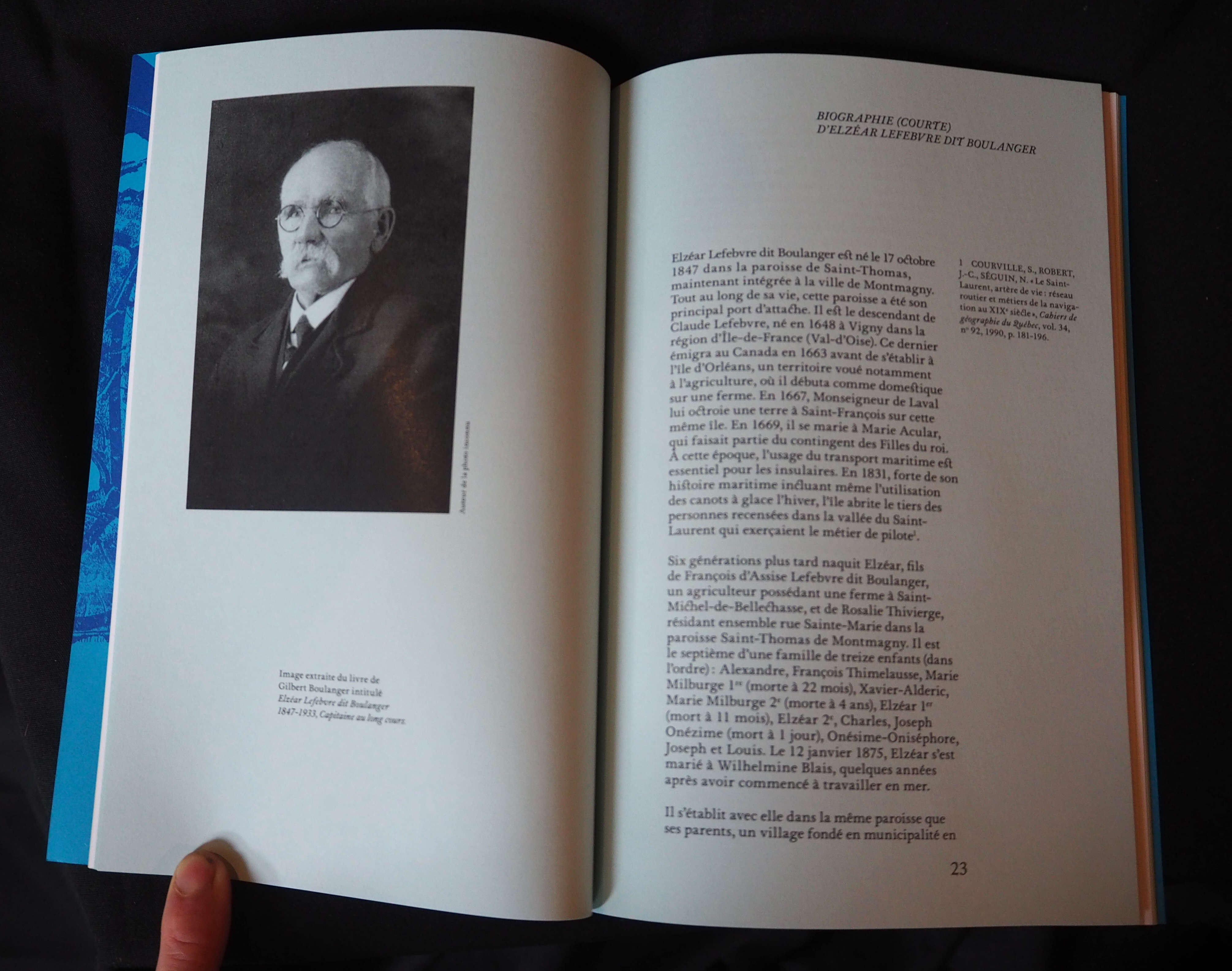 La vallée du Saint-Laurent a été fréquentée par une masse de travailleurs engagés sur les grands voiliers transportant des marchandises aux quatre coins du monde. Les récits de marins québécois ayant pratiqué la navigation au long cours au 19e siècle sont pourtant rares., voir inexistants. Accompagné de notes, de documents et d’un essai, le témoignage du Magnymontois Elzéar Lefebvre dit Boulanger relate ses premières années sur les routes commerciales de l’Empire dès l’âge de 13 ans. À la lecture de ses voyages hors du commun et de son expérience cosmopolite, la ligne d’horizon de nos paysages humains maritimes embrasse la haute mer pour relier cinq continents.